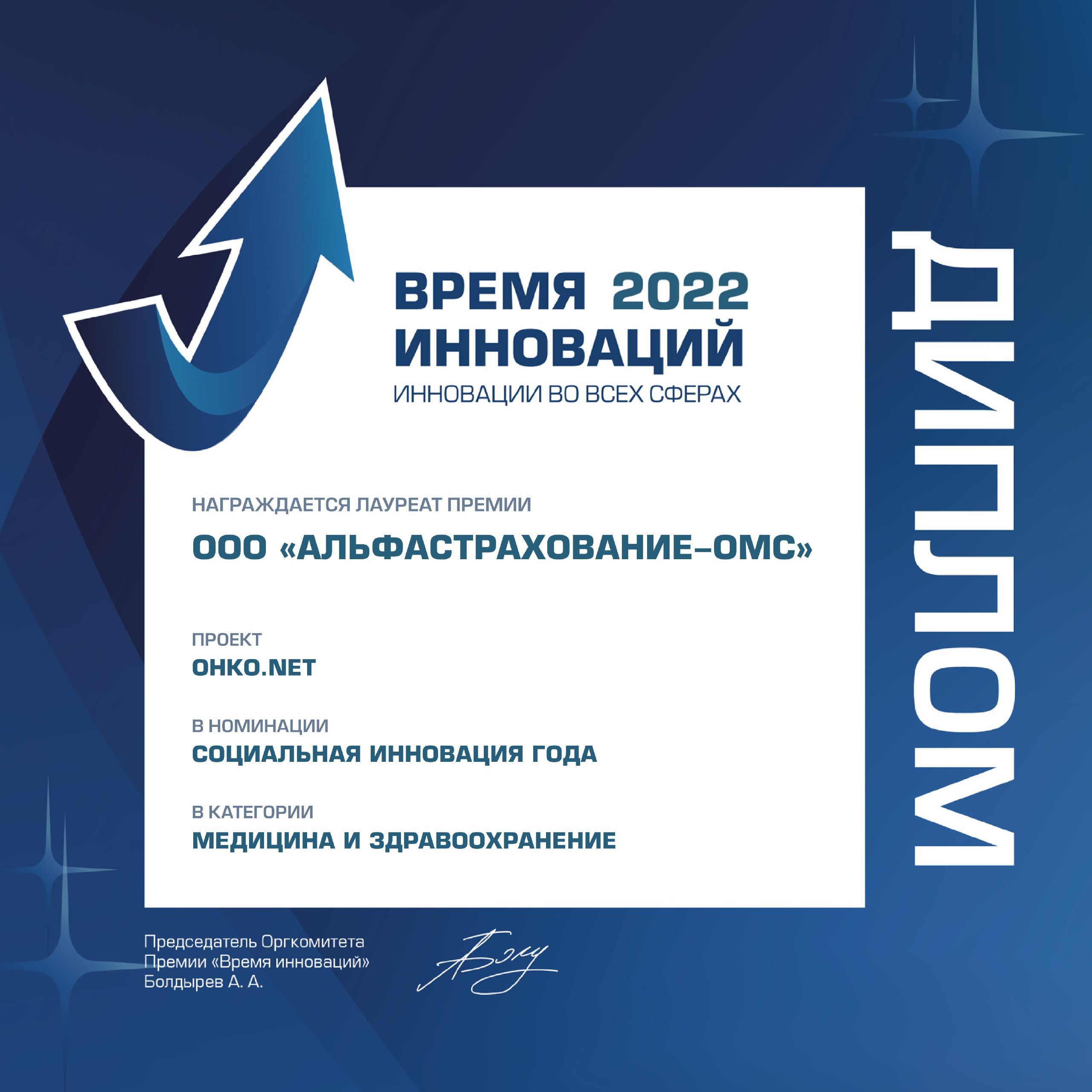 Также «АльфаСтрахование-ОМС» стала победителем премии «Время инноваций-2022» в номинации «Социальная инновация года» в категории «Медицина и здравоохранение» с функционалом «Онко.net». Премия учреждена при поддержке Министерства экономического развития РФ и вручается за создание и внедрение эффективных инновационных разработок в различных областях.