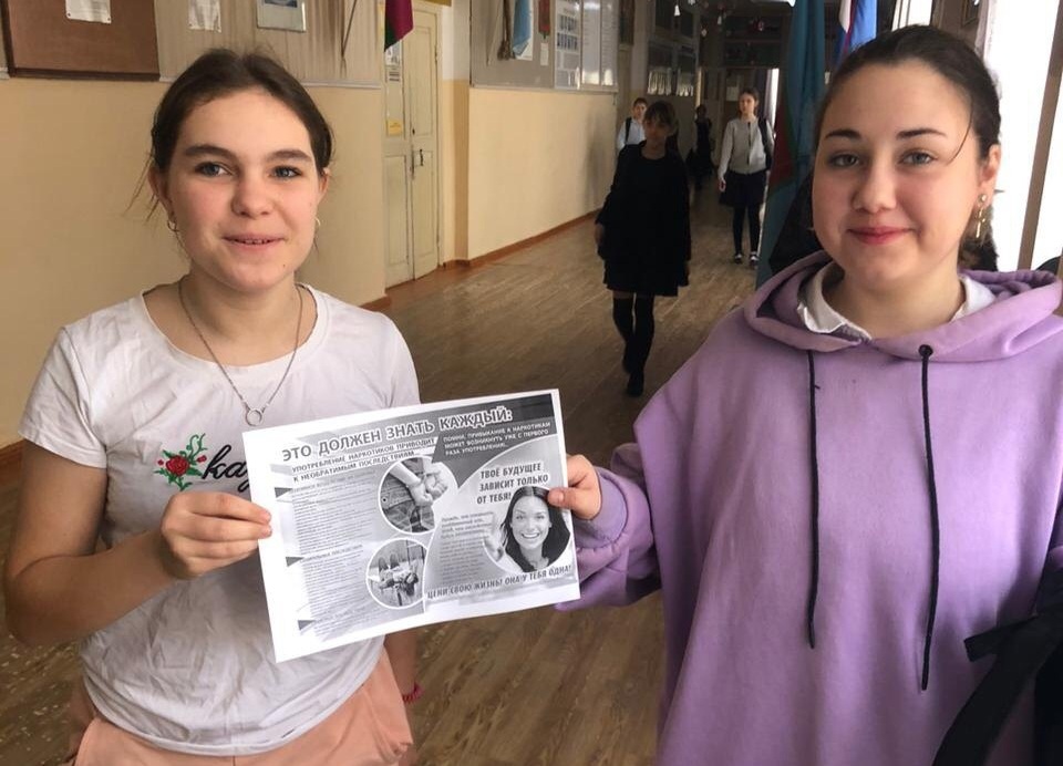 В рамках информационных мероприятий конкурса волонтёры «Антинарко» распространили среди юношей и девушек листовки с информацией о здоровом образе жизни и противодействии распространению наркотиков.