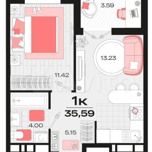 - Общая площадь: 35.6 м²