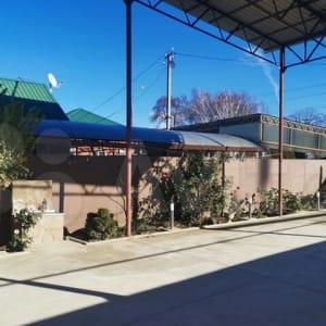 Асфальтированная уличная придворовая площадка, новый забор с выдвижными воротами на пульте. Полностью забетонированный двор 9 на 20 метров, помещается спокойно 4 машины, не большой цветник во дворе, есть раковина с водой, со светильниками. Двор с навесом.