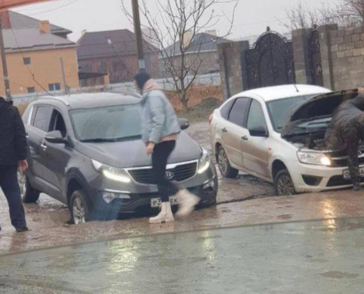 В Краснодаре две машины попали в ловушку после обвала грунта